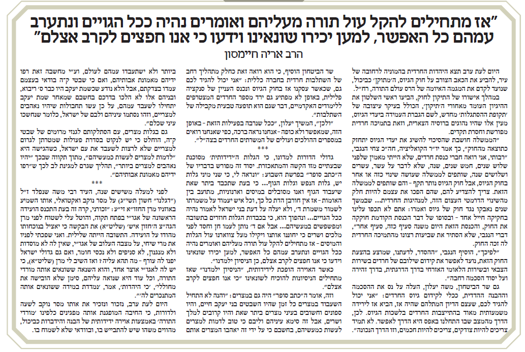 ''הפלס'' במאמר על החיבה המופגנת שעוקרי התורה מרעיפים לפתע על הנציגים החרדים