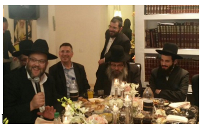 תמונה ממסיבת ה'שבע ברכות' בבית נכדו של הגרח''ק במעמד סבו, סער וטורצקי..