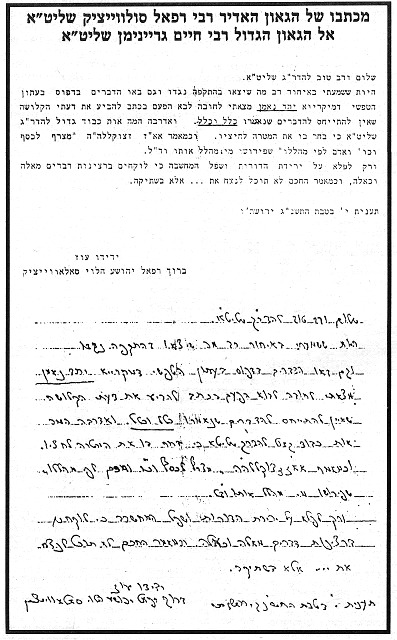 מכתבו של הגאון רבי רפאל יהושע סולוויציק בנו של מרן הגרי''ז