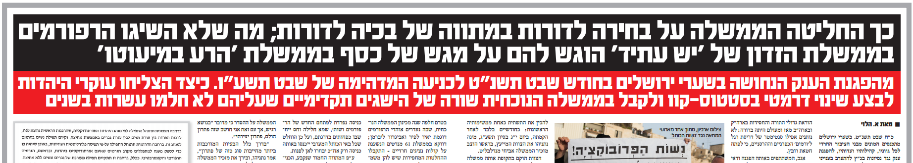 ''הפלס'': מה שלא השיגו הרפורמים בממשלת לפיד, השיגו בממשלת הזדון הנוכחית