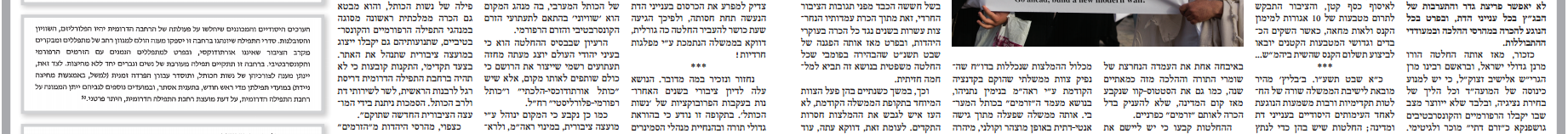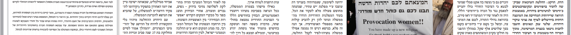 העיתון יוצא במתקפה על הנציגות החרדית, בעקבות מסקנות הדו''ח הממשלתי בענין הכותל המערבי שאושרו ליישום ע''י הממשלה בשבוע שעבר, ובהן שורה של תקדימים למתן זכות פעולה וייצוג לזרם הרפורמי והקונסרבטיבי, מתוך ''הכרה בפלורליזם הדתי הקיים בתוך היהדות''.