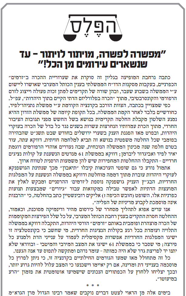 2. הפלס: ''התמסמס כח ההרתעה החרדי''