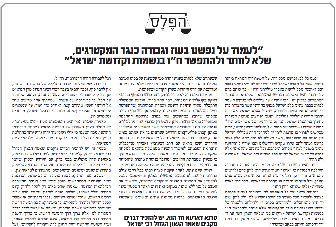 1. זעקת מחאה אדירה מאת מרן גאון ישראל שליט''א