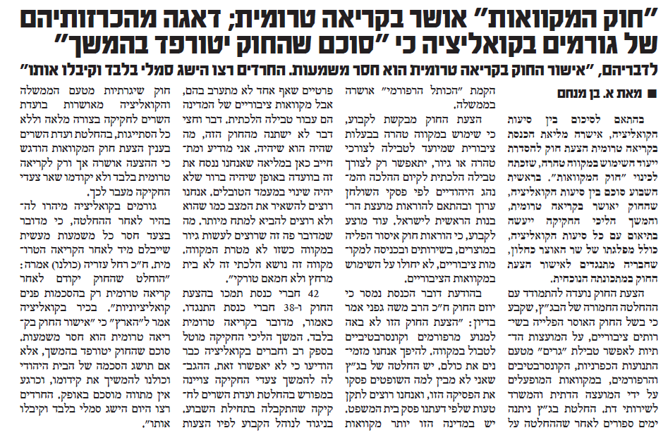 הח''כים החרדים מציגים מצג שוא בדמות חקיקה עוקפת בג''ץ