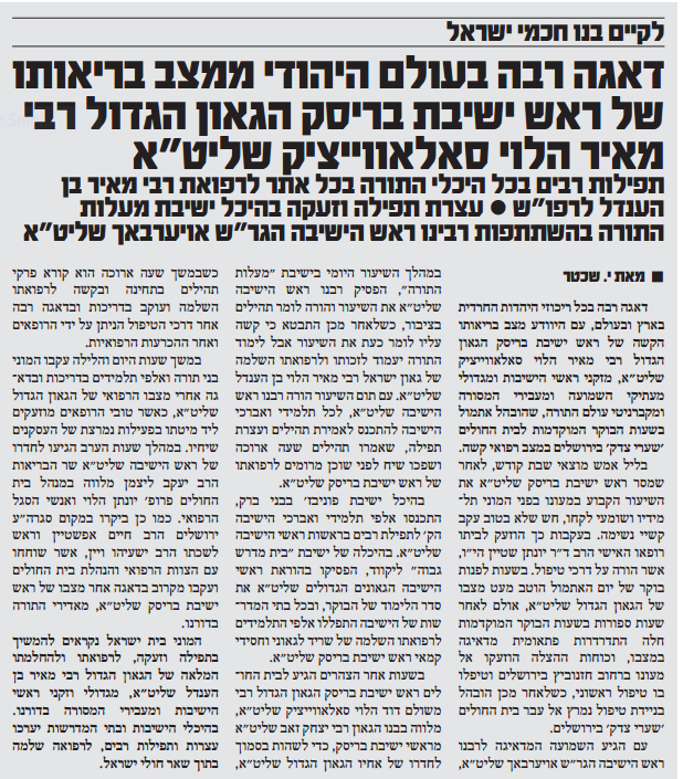 דאגה: הגר''מ סולובייצ'יק אושפז