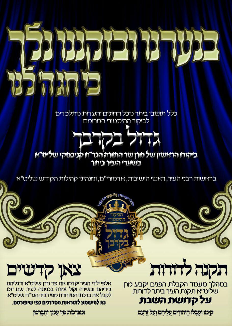 סיומו המוצלח של הביקור, מהווה צל''ש לצוותים שעמלו על ההכנות לביקורו של מרן שליט''א, החלו כבר מסוף השבוע שעבר, עם קבלת האישור על ביקורו של מרן בביתר. צוותי עיריית ביתר נערכו בחפ''ק מיוחד לתכנון וארגון האירועים המרכזיים בניצוחו של ראש העיר וממלא מקומו, וכן נציגי דגל התורה יוסף שטרית וישראל גולומב, וצוות לשכותיהם, והפיקו אירוע מאורגן לעילא, זאת על אף זמן ההתראה הקצר שניתן.