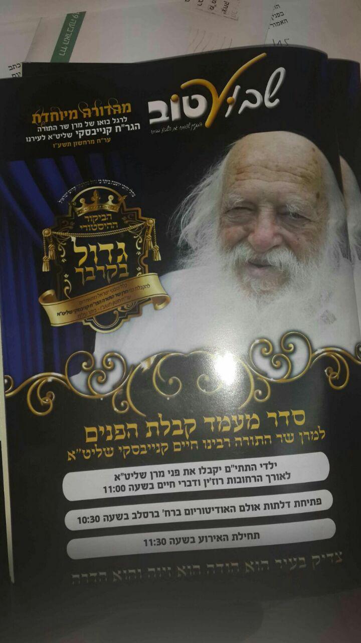 17 אלף איש קבלו את פניו של מרן הגר''ח בביתר // גלריה בעריש פילמר | צילום: אלי סגל ל׳ בתשרי תשע״ו 13/10/201514:24 מעמד חסר תקדים והתרגשות רבה בקרב תושבי ביתר עילית, שהשתתפו בביקורו ההיסטורי של מרן הגר''ח קנייבסקי שליט''א בביתר עילית, במעמד מיוחד לחיזוק ענייני התורה והשבת.