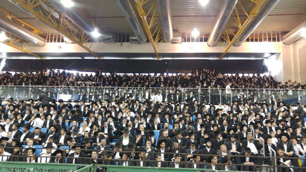 עם כניסתו של מרן שליט''א לאולם יחד עם חבר מועצג''ת הגרב''מ אזרחי שליט''א, נעמד קהל האלפים על רגליו ופצח בשירת ''ימים על ימי מלך תוסיף'' במשך שעה ארוכה. לאחר מכן נאמרו פרקי תהילים לישועת הכלל והפרט ע''י הגאון ר' מאיר שמחה אוירבאך שליט''א רב שכונת הדקל.