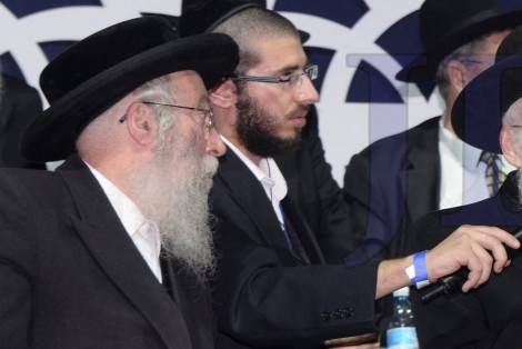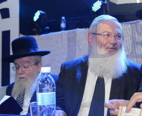 הרב אלי בן דהן, והרב הייזלר הדיין של הרב מרקוביץ על הבמה.