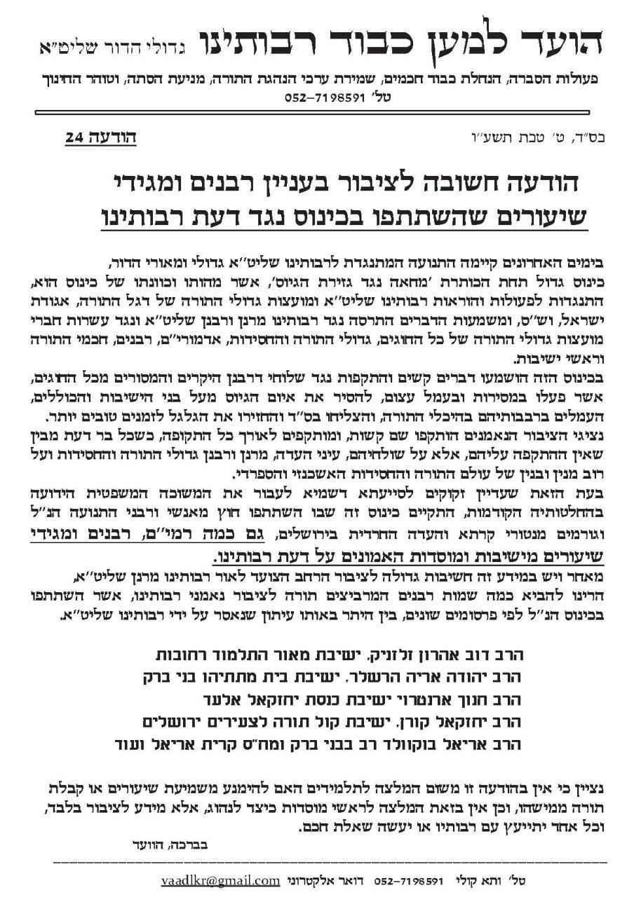 "עֻצוּ עֵצָה וְתֻפָר דַּבְּרוּ דָבָר וְלֹא יָקוּם כִּי עִמָּנוּ אֵל"'עולם התורה ימשיך לפרוח - כי לא מפיהם אנו חיים!