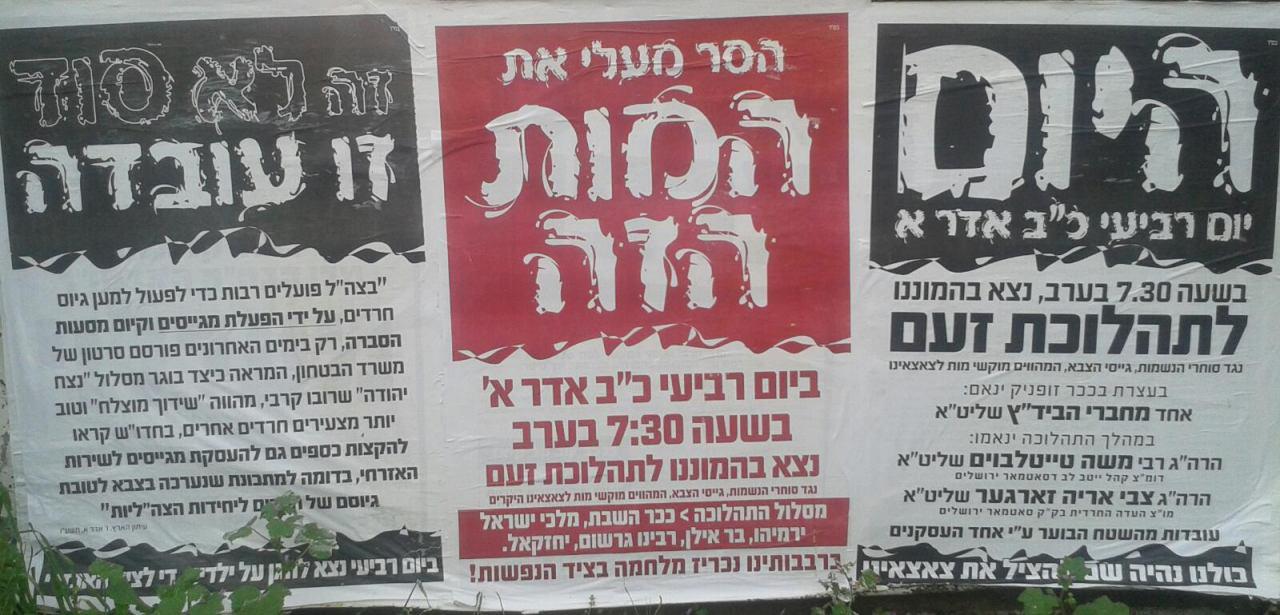 בתמונות מתהלוכת המפגינים משום מה לא רואים את חסידי ברקת אשר בעבר היו מוסרים את הנפש בכדי להפגין, האם הפסיקו שם לעשות כסף מגזירת הגיוס? האם הפשרנות והקרירות אחזה בהם? צפו: מצעד 'העדה' נגד הציידים וחוק הגיוס