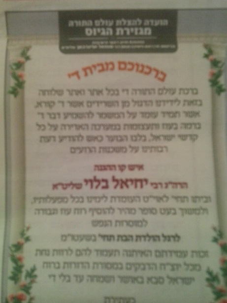 ''...וביתו תחי' לאוי''ט העומדת לימינו בכל מפעלותיו...''