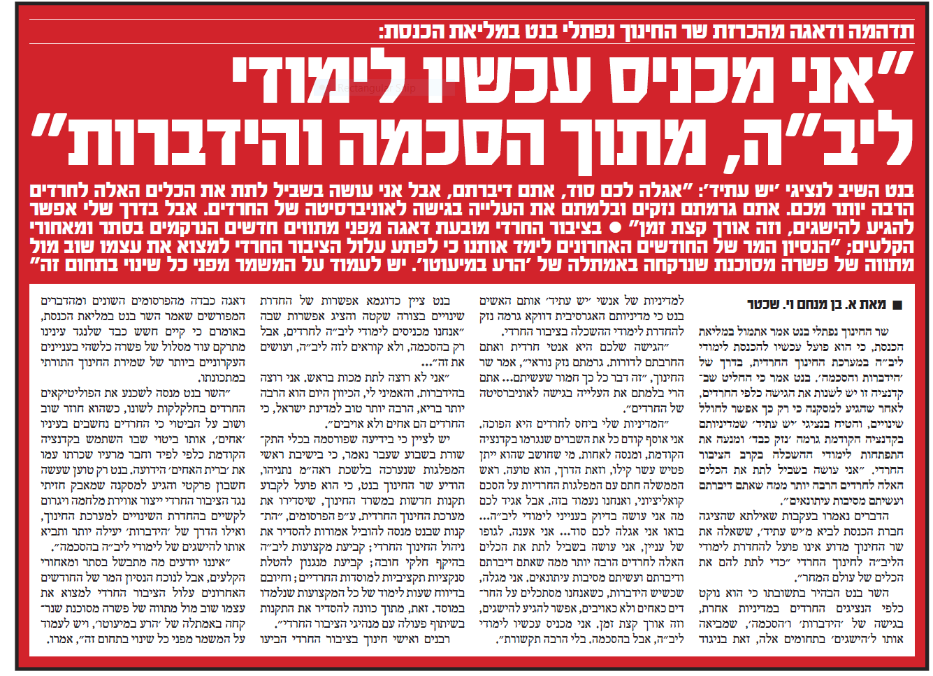 ''הפלס'': דברי בנט חושפים פשרות חמורות בשדה החינוך החרדי הפלסדיגער ייד 31.05.16 16:32 3