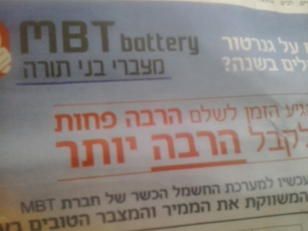 פרסומת היום ב'הפלס' ל'מצברי בני תורה'!!!