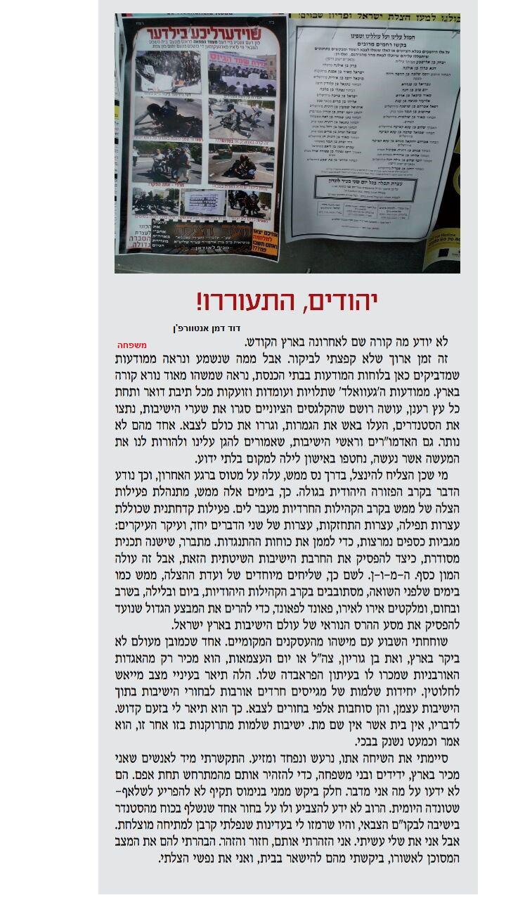 מכתב מ'תושב חו''ל' המבהיר את מסע הכזבים וההפחדות של הפלג