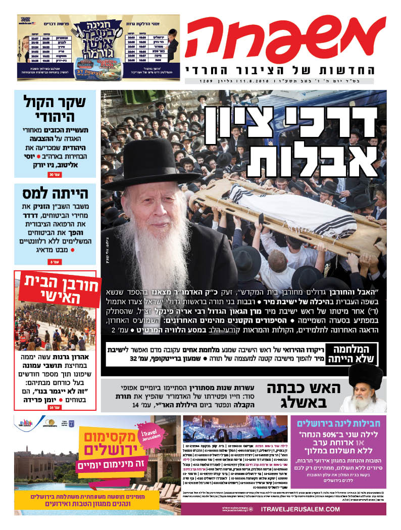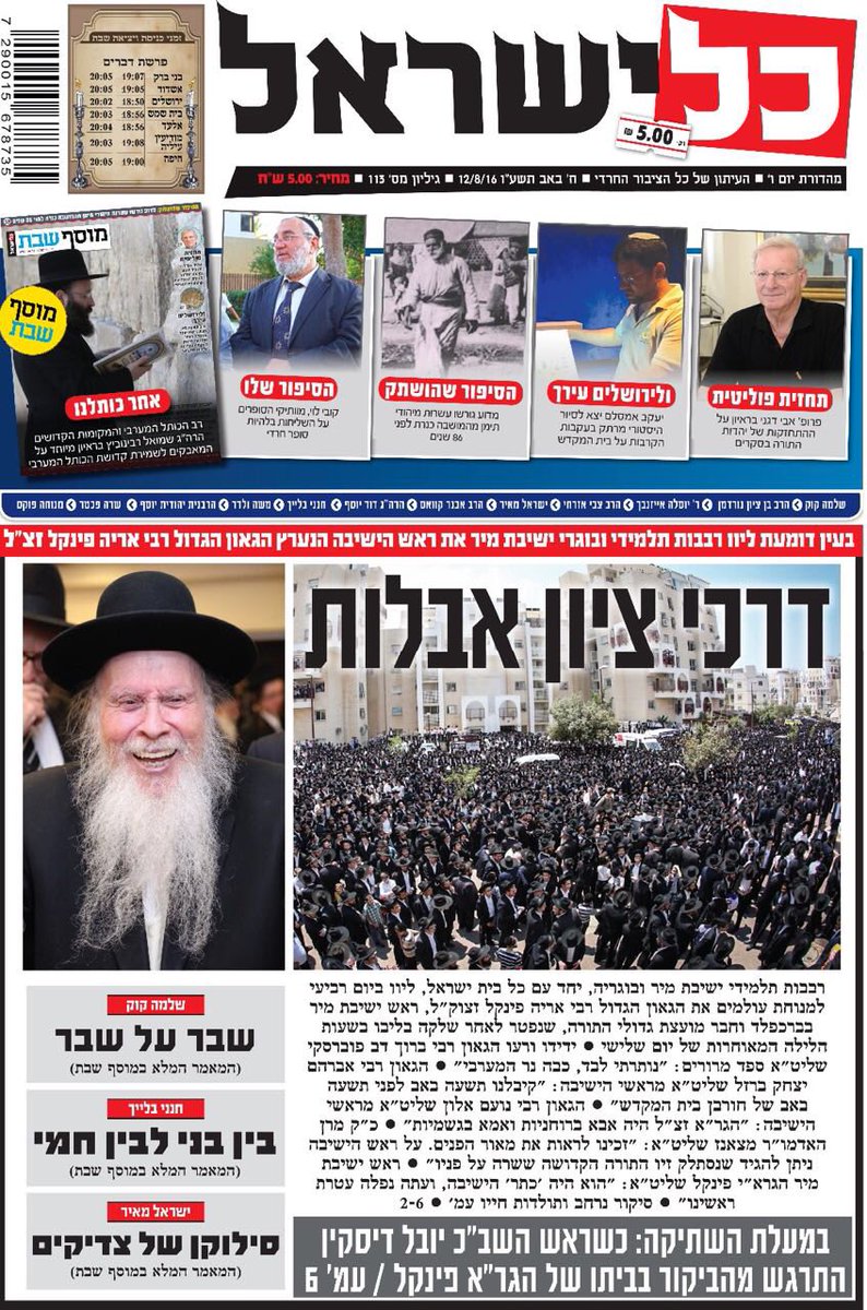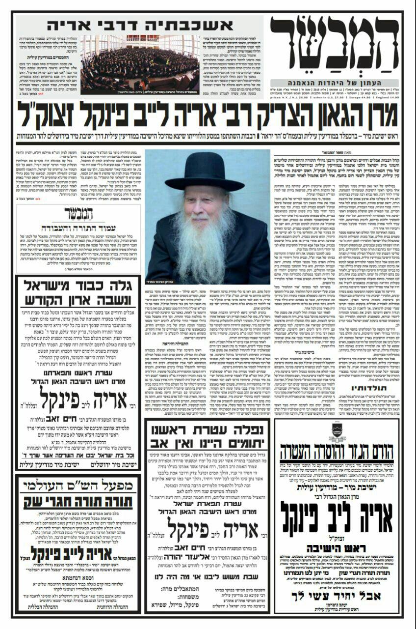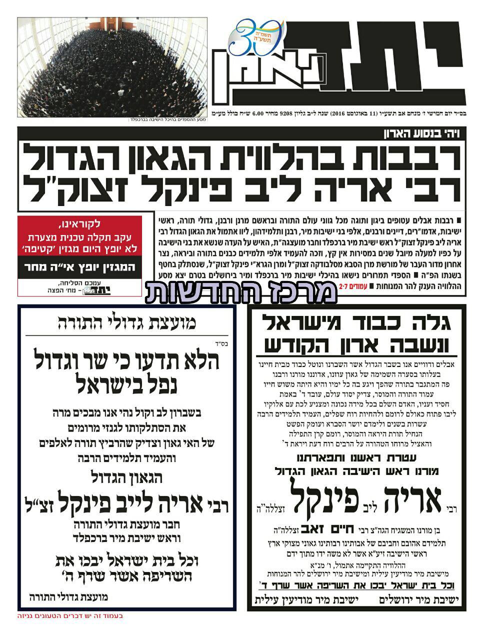 שערי העיתונים יום לאחר פטירתו של מרן הגר''א פינקל זצוק''ל. צפו: