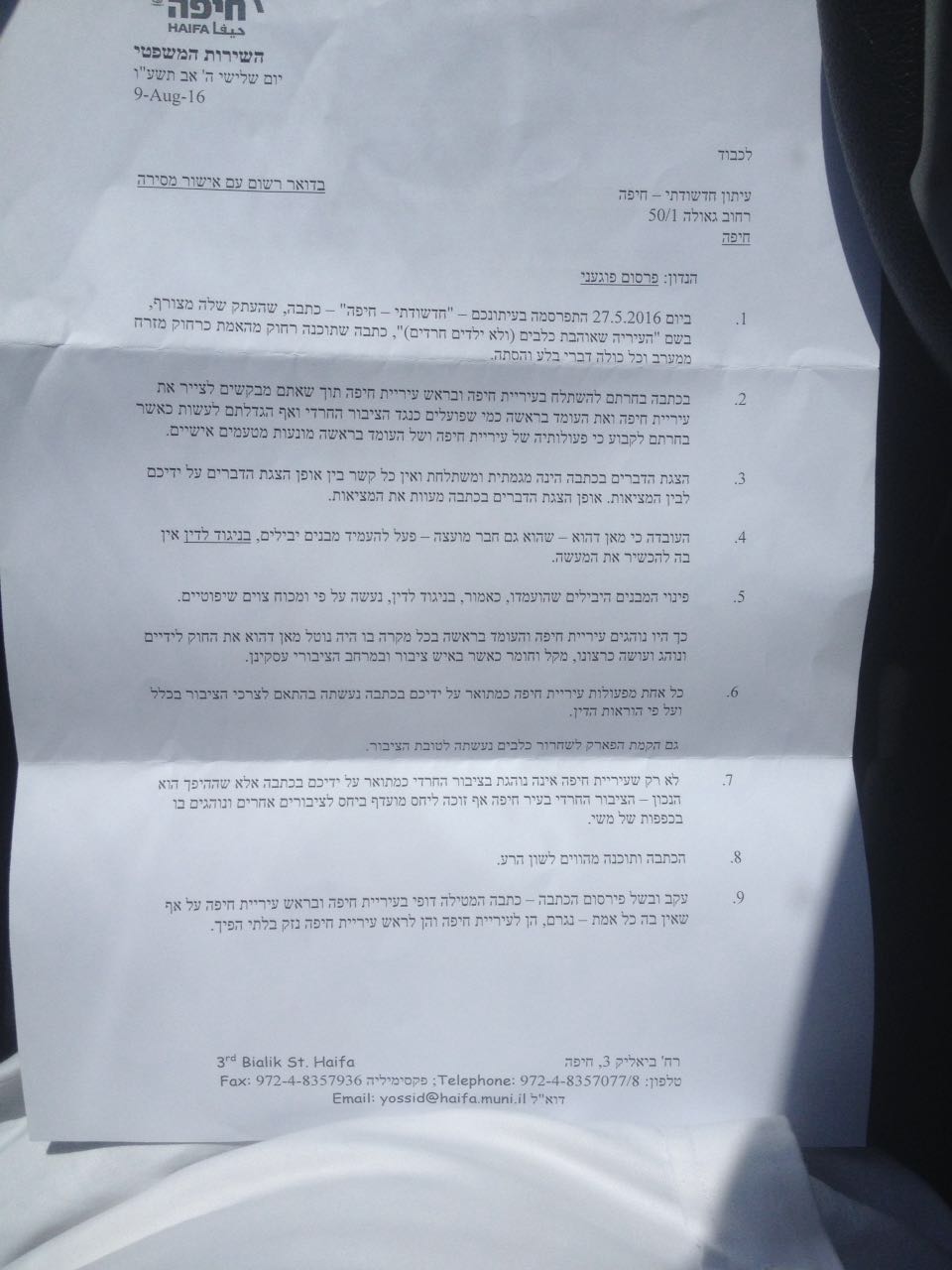 ר''ע חיפה יונה יהב ממשיך להלך אימים על התקשורת המקומית. והפעם תורו של 'חדשודתי':
