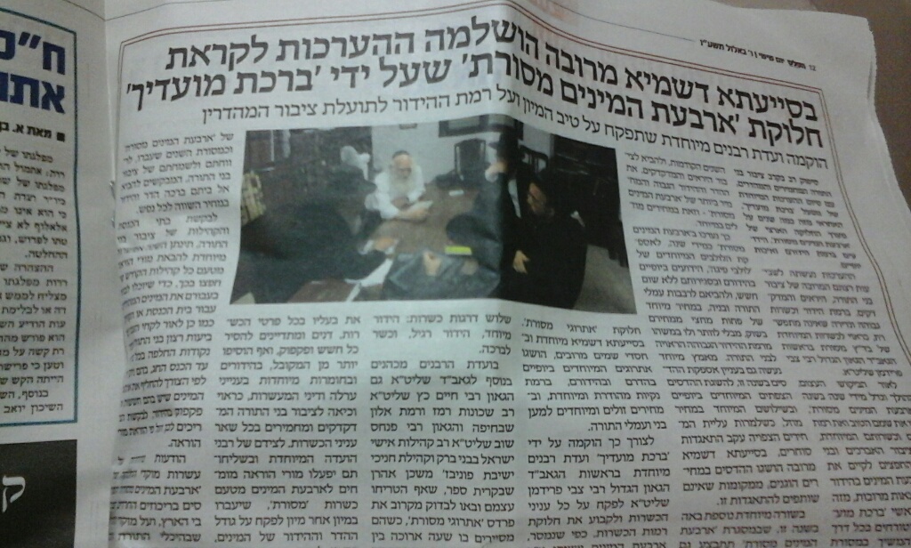 ואילו בסיפור של הרב כץ שעשה להם פדיחות גדולות על השחיטה, לא רק שלא מורידים אותו, אלא מחבקים אותו עם פרסום מכתבו, פלוס עמוד שלם!! בחינמון, על 'ארבעת המינים' שבאחריותו