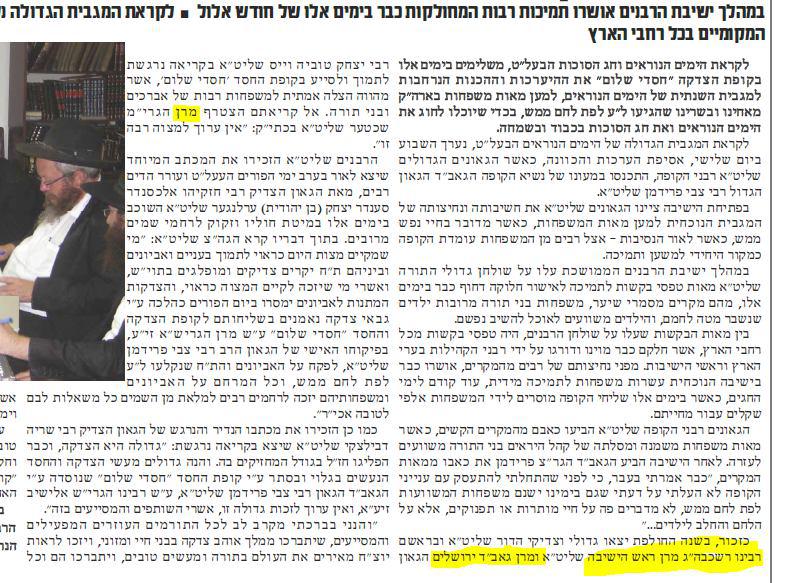 בשבוע שעבר בכתבה פירסומית בהפלס של קופת חסדי שלום כתבו על ר' שמואל את התואר ''רשכבה''ג'', עבר שבוע וכנראה נתי גרוסמן עלה על זה שממנים פה רשכבה''ג מתחת לאף שלו, והשבוע בכתבה של חסדי שלום, כבר הורידו את התואר. רשכבה''ג שבוע שעבר