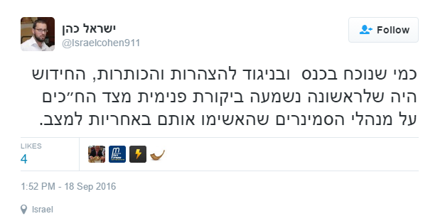 ישראל כהן מעביר את רשמיו מהכינוס..