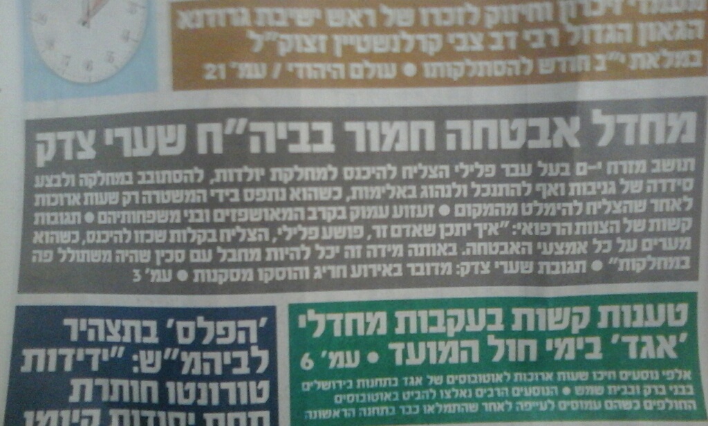 ביה''ח 'שערי צדק' כנראה מסרב לפרסם ב'הפלס', צפו: