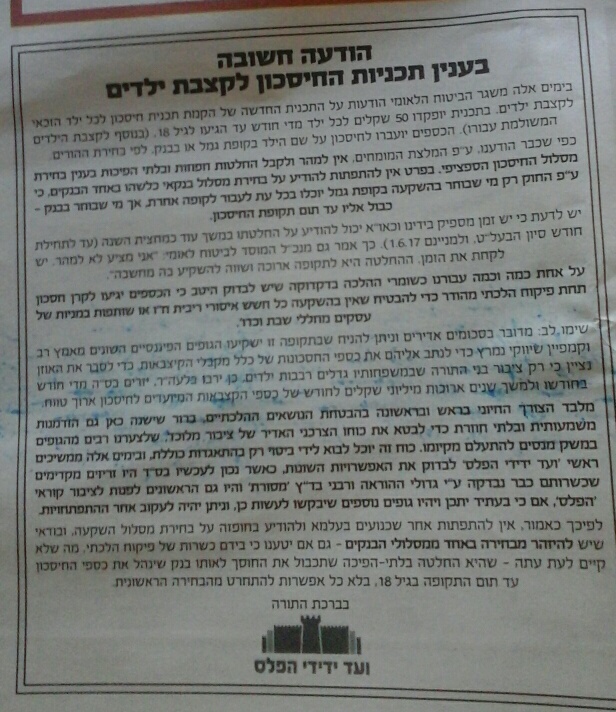 מודעת רבניהם לטובת 'פסגות', ומודעת 'וועד ידידי הפלס' הקוראת לא למהר ולהתפתות להחליט