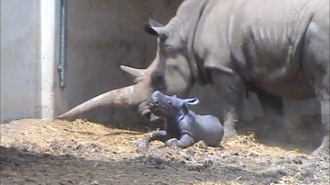 |תמונות| המלטה מרגשת : הקרנפה טנדה המליטה קרנפון היום !
