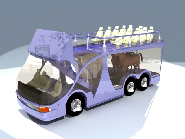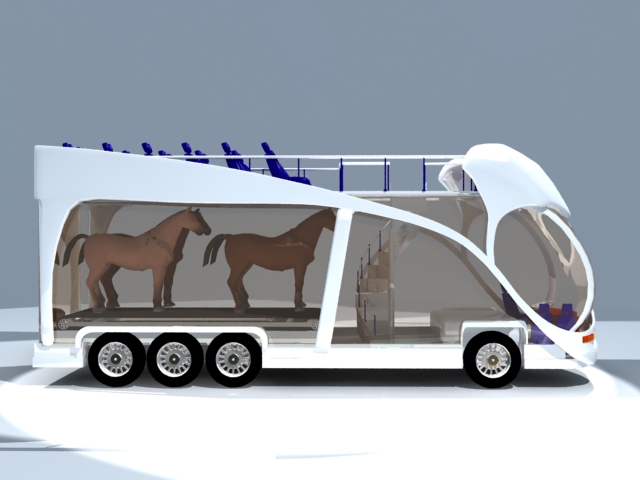 המכונית כוללת תא מיוחד, הכולל סרט נע וסוס ! (כן, סוס).