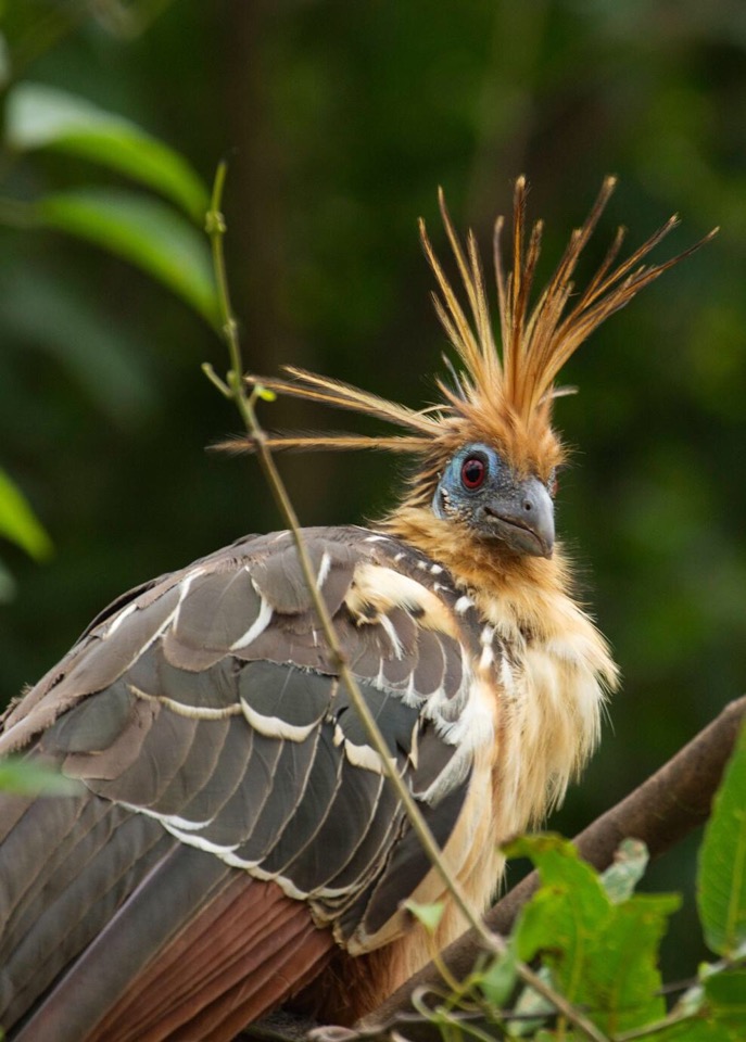 שמו השני של ההואצין הוא "ציפור הסירחון", והוא חי באיזור קו המשווה בדרום אמריקה, ליד ביצות. העוף הגדול מקים את קינו מעל למים וכמעט שאינו עף. להואצין מאפיין ייחודי לו - יש לו טופרים חזקים בקצות הכנפיים שלו.