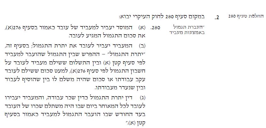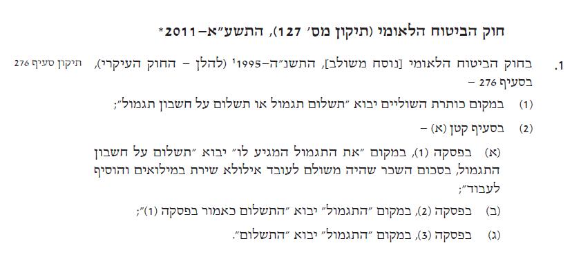 דוגמא: אדם שעשה 22 ימים, על 21 ימים הוא יקבל תשלום רגיל. על היום הנותר הוא מקבל 40% תוספת כלומר החישוב הוא כזה: 1.4 כפול הכנסה של 3 חודשים חלקי 90.