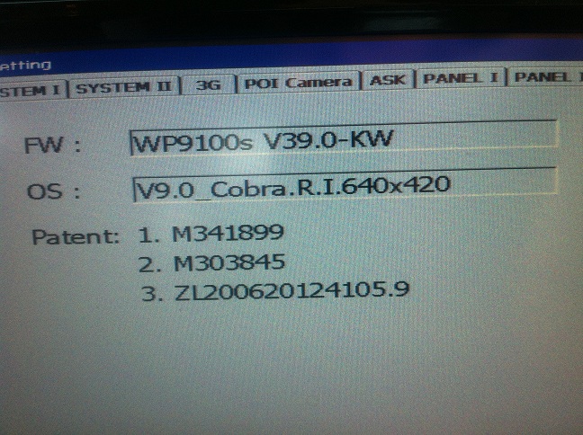 בנוסף, זאת התמונה של המאפיינים של המערכת הפעלה של ה-GPS (מדגם COBRA):
