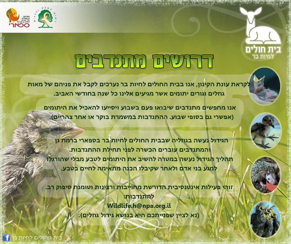 "דרושים מתנדבים לספארי ברמת גן ,פרטים בפנים"
