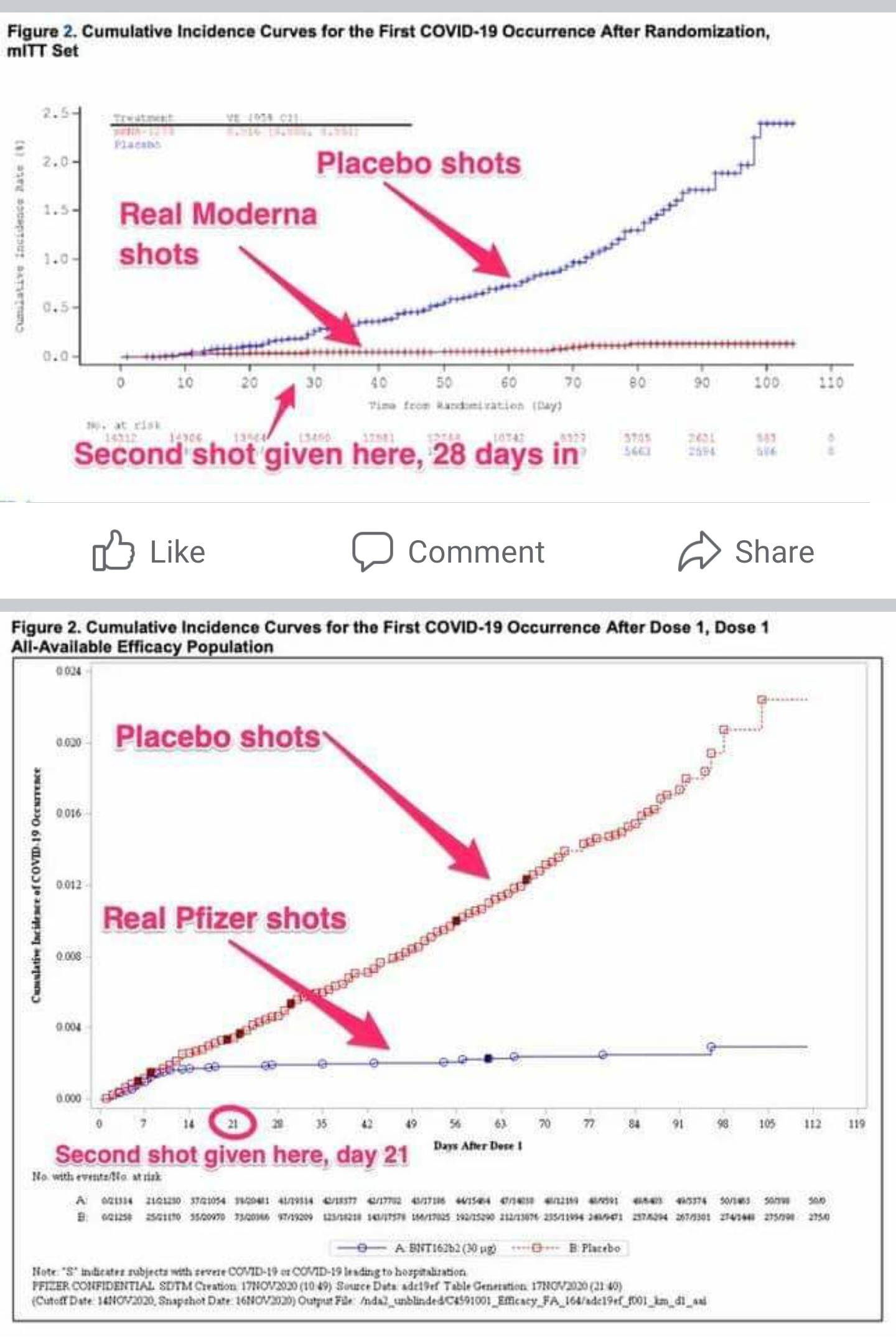 3) אף מחקר שמשווה שתי קבוצות (אחת מחוסנת ואחת לא) הראה שחיסונים שקיימים היום ברפואה (יש בערך 30) מגבירים או גורמים למחלות אוטואימונית. החלבון שנבחר במקרה הזה הוא חלבון נגיפי, מאוד אימונוגני, זמן החשיפה שלו קצר ולכן אין הרבה סיכוי לפתח מחלות אוטואימונית. אם הייתה טעות בבחירת החלבון, והתאים שלנו היו מזהים חלבון אחר בגוף ולא רק את החלבון הנגיפי, המחוסנים היו סובלים מדלקת שלא עוברת די מהר, וזה לא המקרה ב35,000 איש שקיבלו את החיסון של פייזר ומודרנה. מה שכן משותף למי שקיבל את החיסון זה שאחרי 7 ימים מהזריקה הראשונה,אין קוביד ראו תמונות של תוצאות הניסוי של פייזר ומודרנה מצורפות לפוסט).