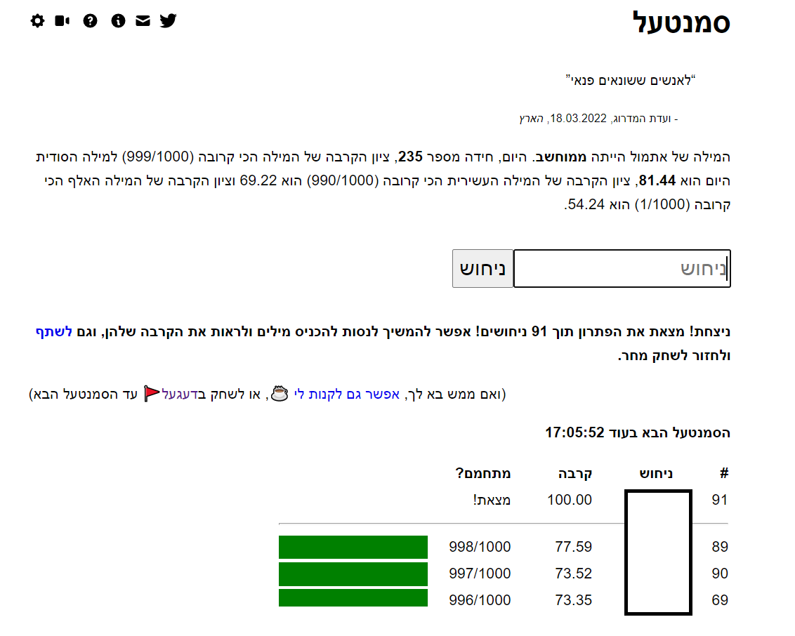 מדי פעם מנסה, בד"כ זה קשה ממש, היום במקרה הצלחתי אחרי פחות מ100 ניחושים.