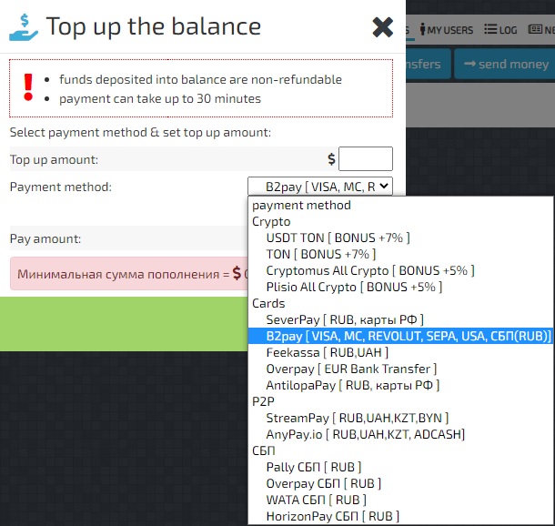 אפשר לשלם גם דרך פייפאל בתיאום דרך הטלגרם (הפרטים באתר, באנגלית). שימו לב שכשסתם שאלתי מסקרנות הבחור ענה שיש מינימום של $30 לטעינה דרך פייפאל, לא ניסיתי להתמקח אבל בהחלט יש מצב שאפשר להתמקח.