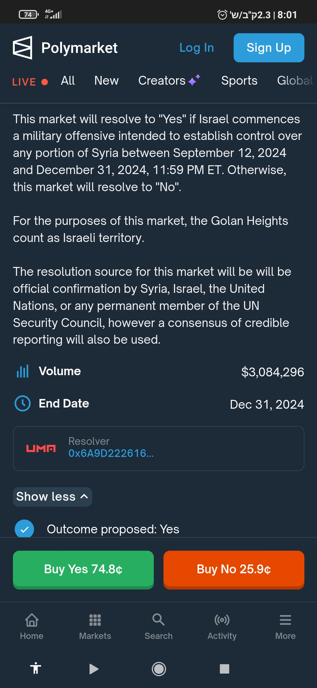 ובפועל ההסכם הפסקת אש היה בכלל בין לבנון לישראל ככה שלפי הכללים שלהם שרשמו באותו ההימור זה היה אמור להיות "לא" אבל יש להם איזשהוא פרוטוקול של הצבעות כלשהו שבו מוכרע האם התשובה היא כן או לא.