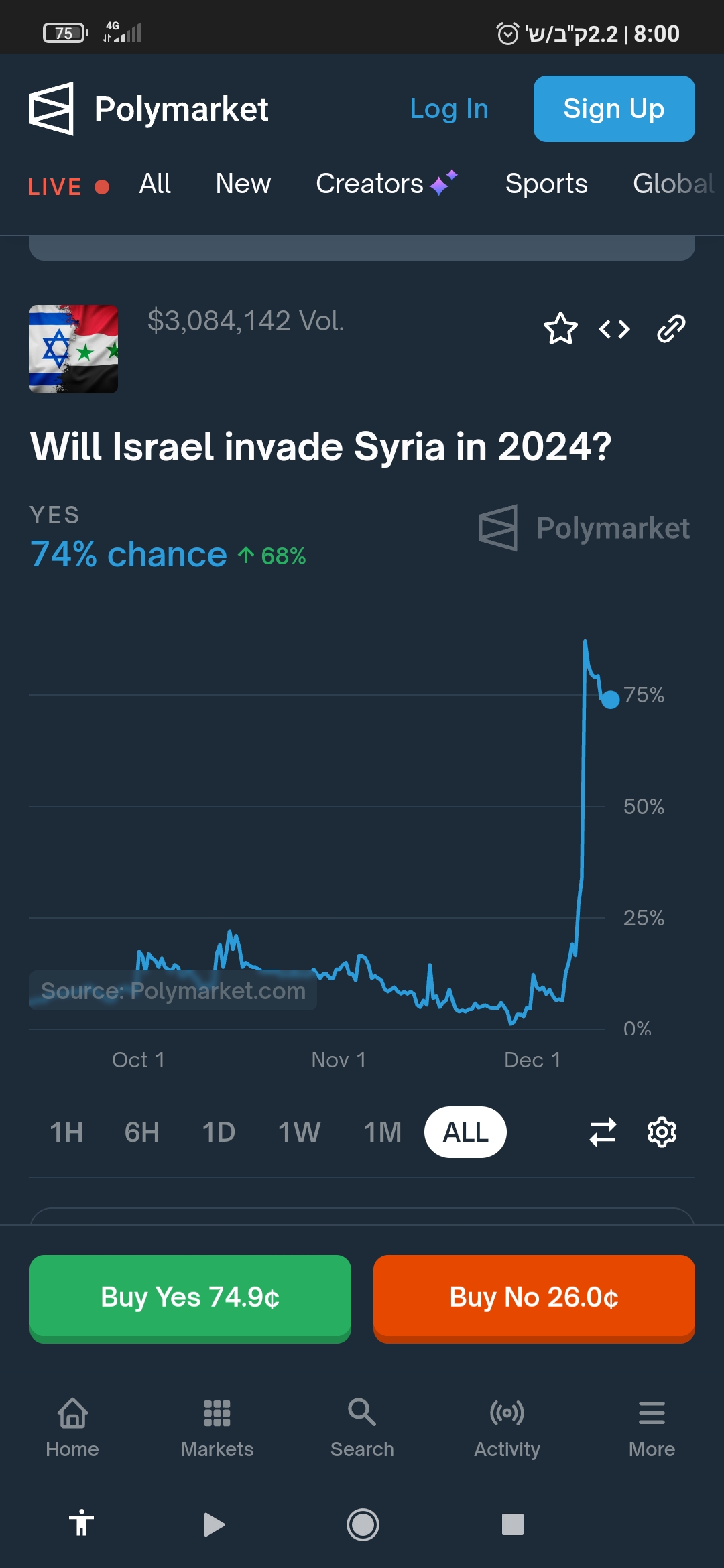 למשל היה הימור ממש לאחרונה האם יהיה הסכם עד 2024 בין חיזבאללה וישראל ככה ששתיהן יודיעו רשמית על הפסקת אש.