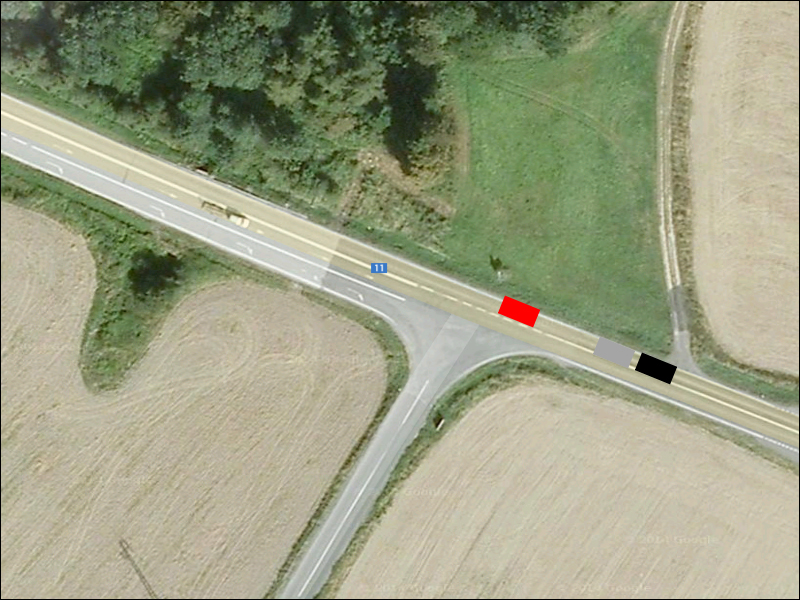 האדום מגיע לעצירה מלאה, אני (באפור) בהילוך שני עם הרגל על