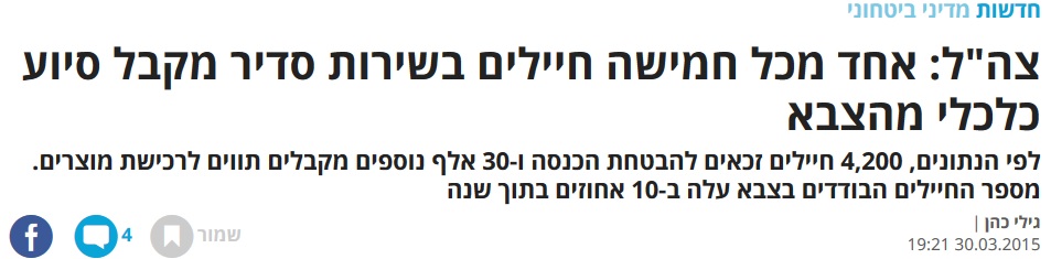 וברור שהכתב מדבר על אחד מכל חמישה חיילים בשירות חובה. כי בשירות קבע לא מקבלים סיוע כלכלי מהצבא.. לכן, אתה לא באמת יכול לדעת מה גודל הצבא הסדיר.