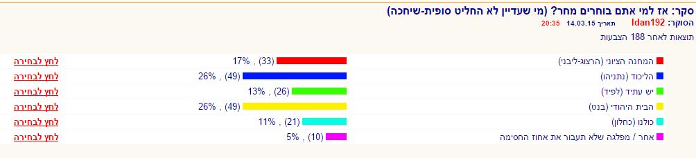 יש גם לזכור שמדובר בפורום ימני (פלוס פלוס) שקהל המצביעים של BB ושותפיו שולט Mad-Dog  28.01.16 12:13 14