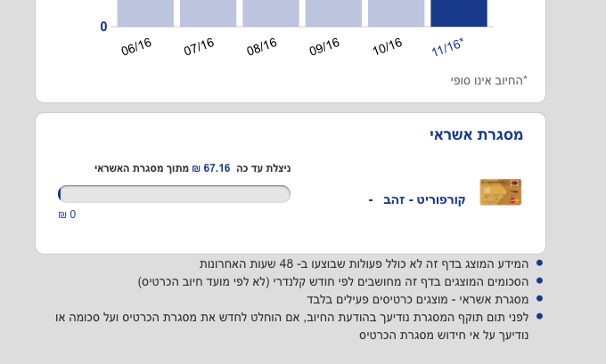 "יש דרך לבדוק באינטרנט מסגרת אשראי פנויה בכרטיס?"