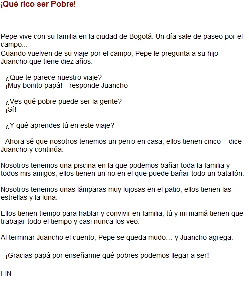 ראיתי את הסיפור הזה בספרדית וממש אהבתי תרגמתי לכם פחות או יותר.. מי שיודע לקרוא ספרדית זה בהרבה יותר יפה..