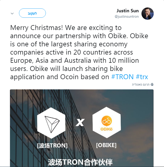 המייסד של המטבע הוא סיני בשם- Justin Sun שאומרים עליו שהוא יהיה "הג'ק הבא"- מייסד עליבאבא