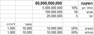 1. אני מקבל את הנחת האוצר להשקעה של 50 מיליארד - כמינימום.