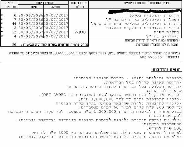 *כיסוי תרופות עד לסך של 1 מיליון ש"ח.