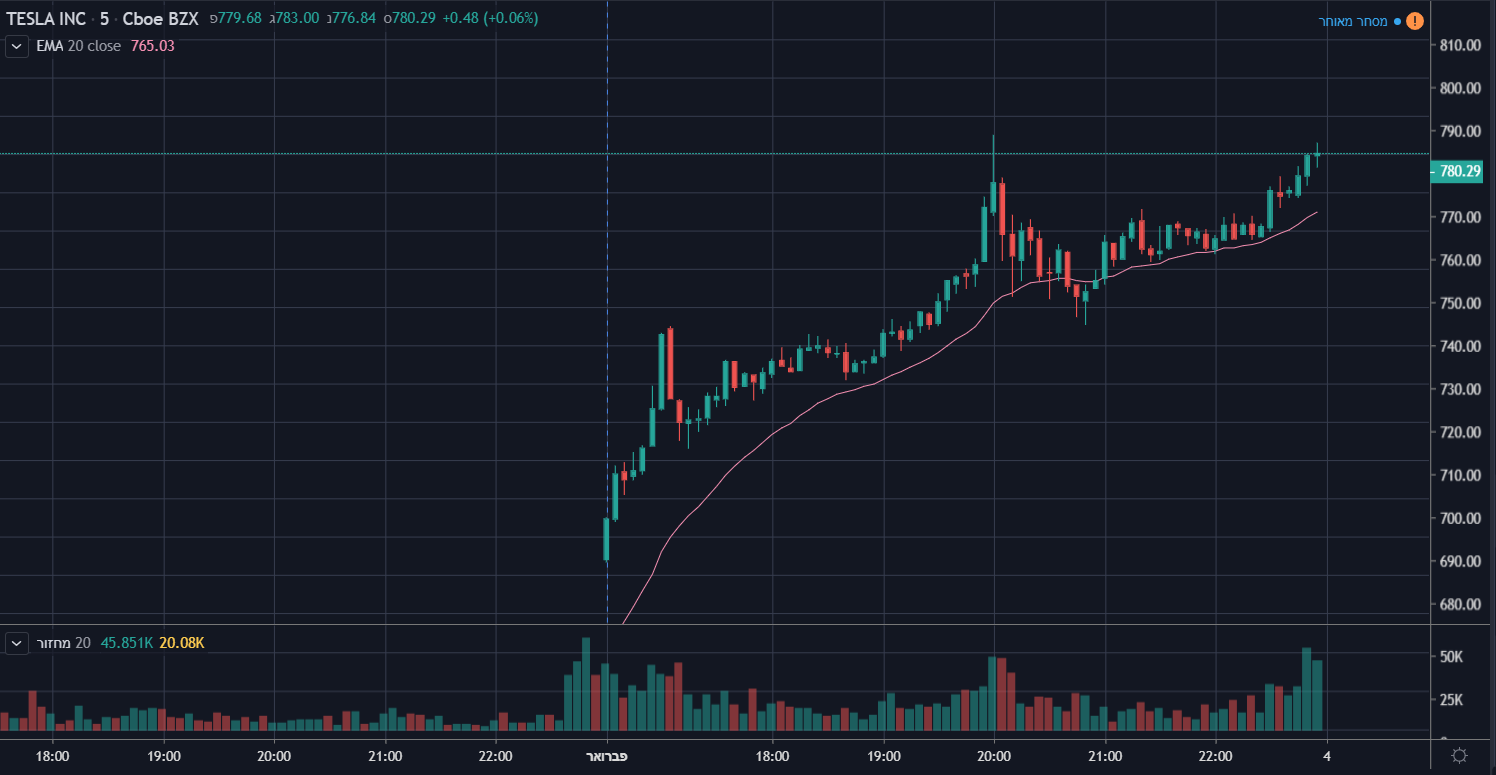 TSLA אתמול טסלה המשיכה לדהור ונסקה למעלה מ-19%, לאחר העליות בשבוע שעבר על רקע פרסום הדוחות הרבעוניים (למעשה המנייה במגמה חיובית מאז הדוחות של הרבעון השלישי של 2019). כזכור, אילון מאסק העשיר תוך שעה את הונו ב-2.3 מיליארד דולר חוץ משורט סקוויז (17.5%)...יש סימנים לכניסה של מוסדיים. מה גרם לכך לדעתכם? https://il.tradingview.com/symbols/NASDAQ-TSLA/