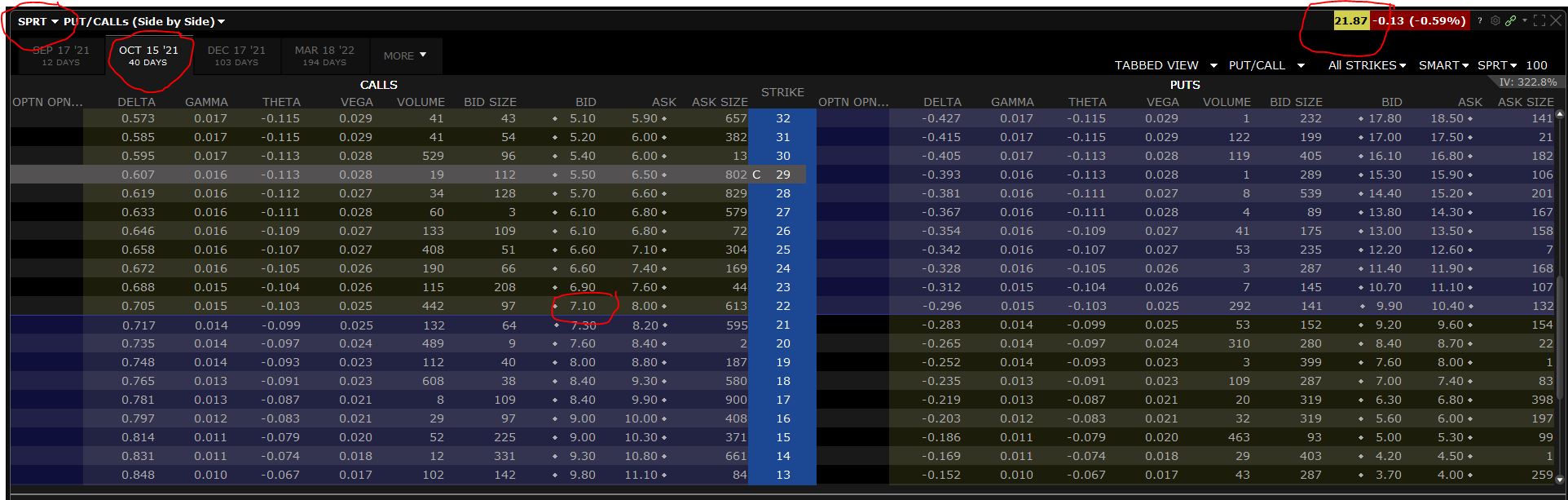 כיצד זה עובד אתה צריך שיהיו לך בחשבון 100 מניות אני נותן את הדוגמא הקיצונית של מנית SPRT שהמחיר שלה כעת 21.87 דולר למניה כפול 100 מניות זה 2187 דולר