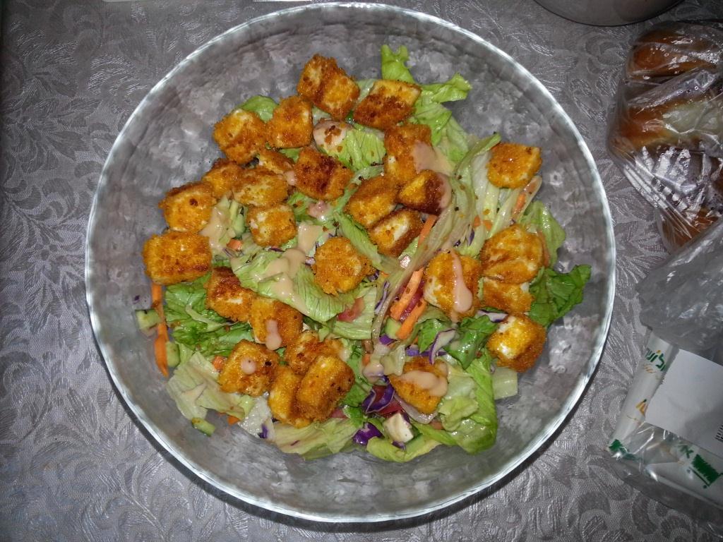 טוב אז לי לא היה כוח להתחיל לחתוך יותר מידי אז קניתי לקט לסלט שעם חסה, עלי בייבי, עגבניות שר, בצל וכו.... הוספתי מלפפונים ועגבניות, את החלומי עשיתי עם פירורי לחם וזה מה שיצא לי....