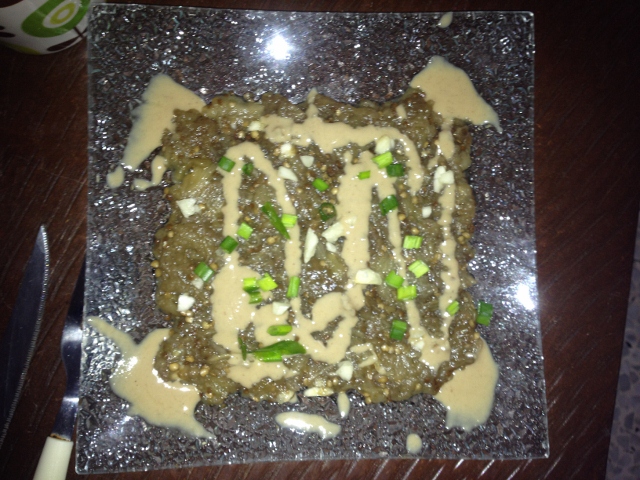 קרפצ'יו חציל ששכחתי לשים בו שמן זית כי זו פעם ראשונה שהכנתי חח אבל אחרי זה שמתי ויצא אחלה