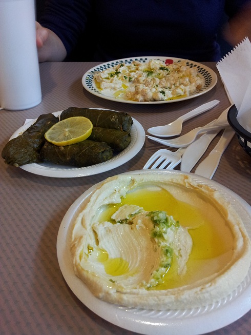 אז היה לנו חומוס נקי, חומוס מסבאחה ועלי גפן מגולגלים!